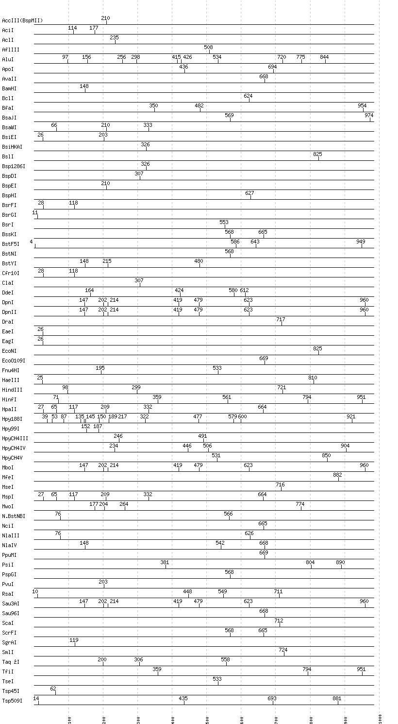 Uncut enzymes: AatII, Acc65I, AccI, AccII(FnuDII), AfeI, AflII, AgeI, AhdI, AlwI, AlwNI, Aor51HI(Eco47III), ApaI, ApaLI, AscI, AseI, AvaI, AvrII, BaeI, BalI, BanI, BanII, BbsI, BbvCI, BbvI, BcgI, BciVI, BglI, BglII, BlpI, BmrI, BpmI, BsaAI, BsaBI, BsaHI, BsaI, BsaXI, BseRI, BsgI, BsiWI, BsmAI, BsmBI, BsmFI, BsmI, BsoBI, BspMI, BspT107I(HgiCI), BsrBI, BsrDI, BssHII, BssSI, BstAPI, BstBI, BstEII, BstUI, BstXI, BstZ17I, Bsu36I, BtgI, BtrI, BtsI, Cac8I, DraIII, DrdI, EarI, EciI, EcoRI, EcoRV, FauI, FokI, FseI, FspI, HaeII, HgaI, HhaI, HinP1I, HincII, HpaI, HphI, I-CeuI, I-SceI, KasI, KpnI, MboII, MluI, MlyI, MnlI, MscI, MslI, MspA1I, NaeI, , NarI, NcoI, NdeI, NgoMIV, NheI, NotI, NruI, NsiI, NspI, PI-PspI, PI-SceI(VDE), PacI, PaeR7I, PciI, PflFI, PflMI, PleI, PmeI, PmlI, PshAI, PspOMI, PstI, PvuII, RsrII, SacI, SacII, SalI, SapI, SbfI, SexAI, SfaNI, SfcI, SfiI, SfoI, SmaI, SnaBI, SpeI, SphI, SspI, StuI, StyI, SwaI, TliI, TspRI, Tth111I, XbaI, XcmI, XhoI, XmaI, XmnI