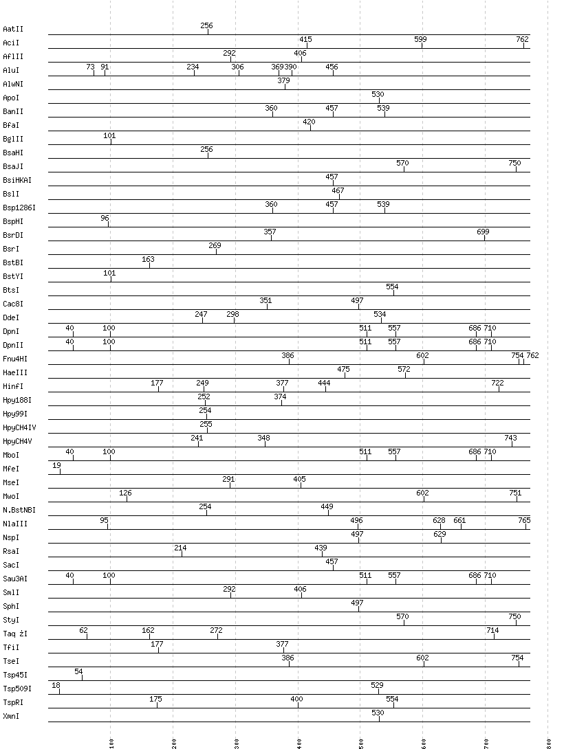 Uncut enzymes: Acc65I, AccI, AccII(FnuDII), AccIII(BspMII), AclI, AfeI, AflIII, AgeI, AhdI, AlwI, Aor51HI(Eco47III), ApaI, ApaLI, AscI, AseI, AvaI, AvaII, AvrII, BaeI, BalI, BamHI, BanI, BbsI, BbvCI, BbvI, BcgI, BciVI, BclI, BglI, BlpI, BmrI, BpmI, BsaAI, BsaBI, BsaI, BsaWI, BsaXI, BseRI, BsgI, BsiEI, BsiWI, BsmAI, BsmBI, BsmFI, BsmI, BsoBI, BspDI, BspEI, BspMI, BspT107I(HgiCI), BsrBI, BsrFI, BsrGI, BssHII, BssKI, BssSI, BstAPI, BstEII, BstF5I, BstNI, BstUI, BstXI, BstZ17I, Bsu36I, BtgI, BtrI, Cfr10I, ClaI, DraI, DraIII, DrdI, EaeI, EagI, EarI, EciI, EcoNI, EcoO109I, EcoRI, EcoRV, FauI, FokI, FseI, FspI, HaeII, HgaI, HhaI, HinP1I, HincII, HindIII, HpaI, HpaII, HphI, HpyCH4III, I-CeuI, I-SceI, KasI, KpnI, MboII, MluI, MlyI, MnlI, MscI, MslI, MspA1I, MspI, NaeI, , NarI, NciI, NcoI, NdeI, NgoMIV, NheI, NlaIV, NotI, NruI, NsiI, PI-PspI, PI-SceI(VDE), PacI, PaeR7I, PciI, PflFI, PflMI, PleI, PmeI, PmlI, PpuMI, PshAI, PsiI, PspGI, PspOMI, PstI, PvuI, PvuII, RsrII, SacII, SalI, SapI, Sau96I, SbfI, ScaI, ScrFI, SexAI, SfaNI, SfcI, SfiI, SfoI, SgrAI, SmaI, SnaBI, SpeI, SspI, StuI, SwaI, TliI, Tth111I, XbaI, XcmI, XhoI, XmaI