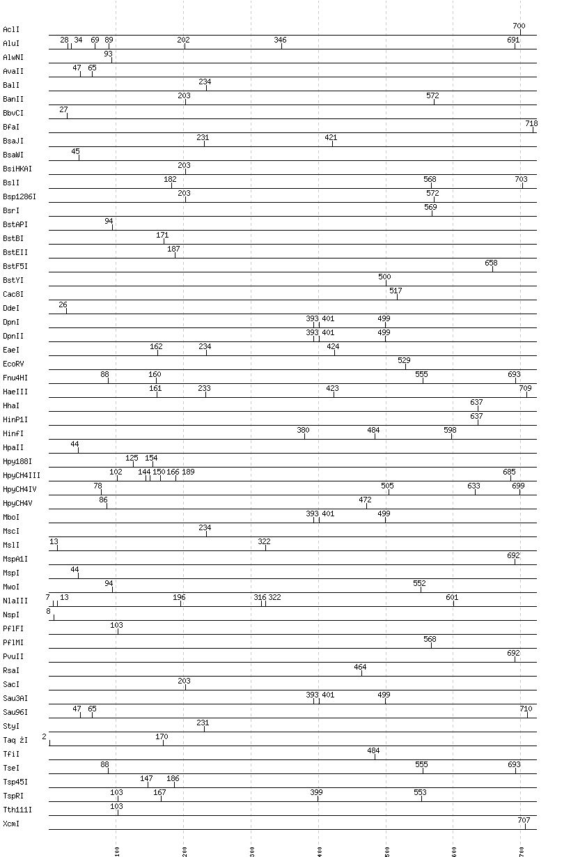 Uncut enzymes: AatII, Acc65I, AccI, AccII(FnuDII), AccIII(BspMII), AciI, AfeI, AflII, AflIII, AgeI, AhdI, AlwI, Aor51HI(Eco47III), ApaI, ApaLI, ApoI, AscI, AseI, AvaI, AvrII, BaeI, BamHI, BanI, BbsI, BbvI, BcgI, BciVI, BclI, BglI, BglII, BlpI, BmrI, BpmI, BsaAI, BsaBI, BsaHI, BsaI, BsaXI, BseRI, BsgI, BsiEI, BsiWI, BsmAI, BsmBI, BsmFI, BsmI, BsoBI, BspDI, BspEI, BspHI, BspMI, BspT107I(HgiCI), BsrBI, BsrDI, BsrFI, BsrGI, BssHII, BssKI, BssSI, BstNI, BstUI, BstXI, BstZ17I, Bsu36I, BtgI, BtrI, BtsI, Cfr10I, ClaI, DraI, DraIII, DrdI, EagI, EarI, EciI, EcoNI, EcoO109I, EcoRI, FauI, FokI, FseI, FspI, HaeII, HgaI, HincII, HindIII, HpaI, HphI, Hpy99I, I-CeuI, I-SceI, KasI, KpnI, MboII, MfeI, MluI, MlyI, MnlI, MseI, N.BstNBI, NaeI, , NarI, NciI, NcoI, NdeI, NgoMIV, NheI, NlaIV, NotI, NruI, NsiI, PI-PspI, PI-SceI(VDE), PacI, PaeR7I, PciI, PleI, PmeI, PmlI, PpuMI, PshAI, PsiI, PspGI, PspOMI, PstI, PvuI, RsrII, SacII, SalI, SapI, SbfI, ScaI, ScrFI, SexAI, SfaNI, SfcI, SfiI, SfoI, SgrAI, SmaI, SmlI, SnaBI, SpeI, SphI, SspI, StuI, SwaI, TliI, Tsp509I, XbaI, XhoI, XmaI, XmnI