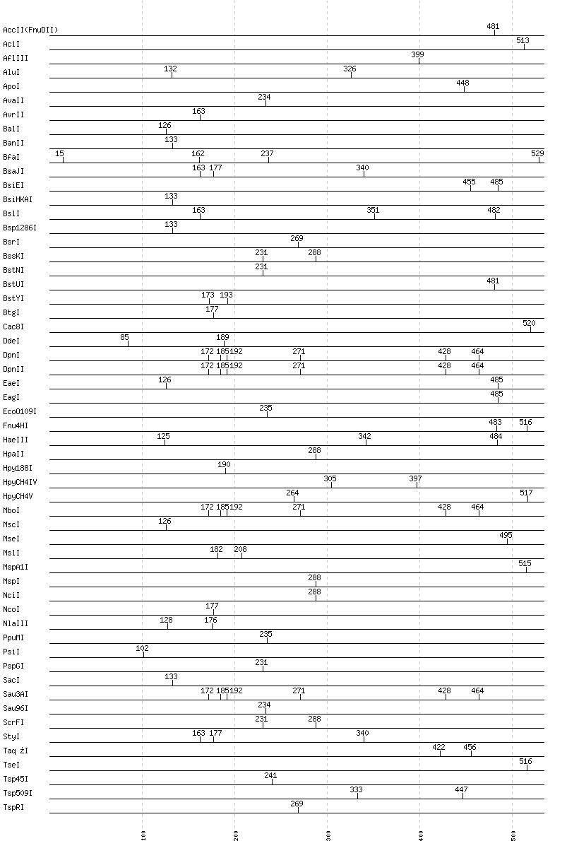 Uncut enzymes: AatII, Acc65I, AccI, AccIII(BspMII), AclI, AfeI, AflII, AgeI, AhdI, AlwI, AlwNI, Aor51HI(Eco47III), ApaI, ApaLI, AscI, AseI, AvaI, BaeI, BamHI, BanI, BbsI, BbvCI, BbvI, BcgI, BciVI, BclI, BglI, BglII, BlpI, BmrI, BpmI, BsaAI, BsaBI, BsaHI, BsaI, BsaWI, BsaXI, BseRI, BsgI, BsiWI, BsmAI, BsmBI, BsmFI, BsmI, BsoBI, BspDI, BspEI, BspHI, BspMI, BspT107I(HgiCI), BsrBI, BsrDI, BsrFI, BsrGI, BssHII, BssSI, BstAPI, BstBI, BstEII, BstF5I, BstXI, BstZ17I, Bsu36I, BtrI, BtsI, Cfr10I, ClaI, DraI, DraIII, DrdI, EarI, EciI, EcoNI, EcoRI, EcoRV, FauI, FokI, FseI, FspI, HaeII, HgaI, HhaI, HinP1I, HincII, HindIII, HinfI, HpaI, HphI, Hpy99I, HpyCH4III, I-CeuI, I-SceI, KasI, KpnI, MboII, MfeI, MluI, MlyI, MnlI, MwoI, N.BstNBI, NaeI, , NarI, NdeI, NgoMIV, NheI, NlaIV, NotI, NruI, NsiI, NspI, PI-PspI, PI-SceI(VDE), PacI, PaeR7I, PciI, PflFI, PflMI, PleI, PmeI, PmlI, PshAI, PspOMI, PstI, PvuI, PvuII, RsaI, RsrII, SacII, SalI, SapI, SbfI, ScaI, SexAI, SfaNI, SfcI, SfiI, SfoI, SgrAI, SmaI, SmlI, SnaBI, SpeI, SphI, SspI, StuI, SwaI, TfiI, TliI, Tth111I, XbaI, XcmI, XhoI, XmaI, XmnI